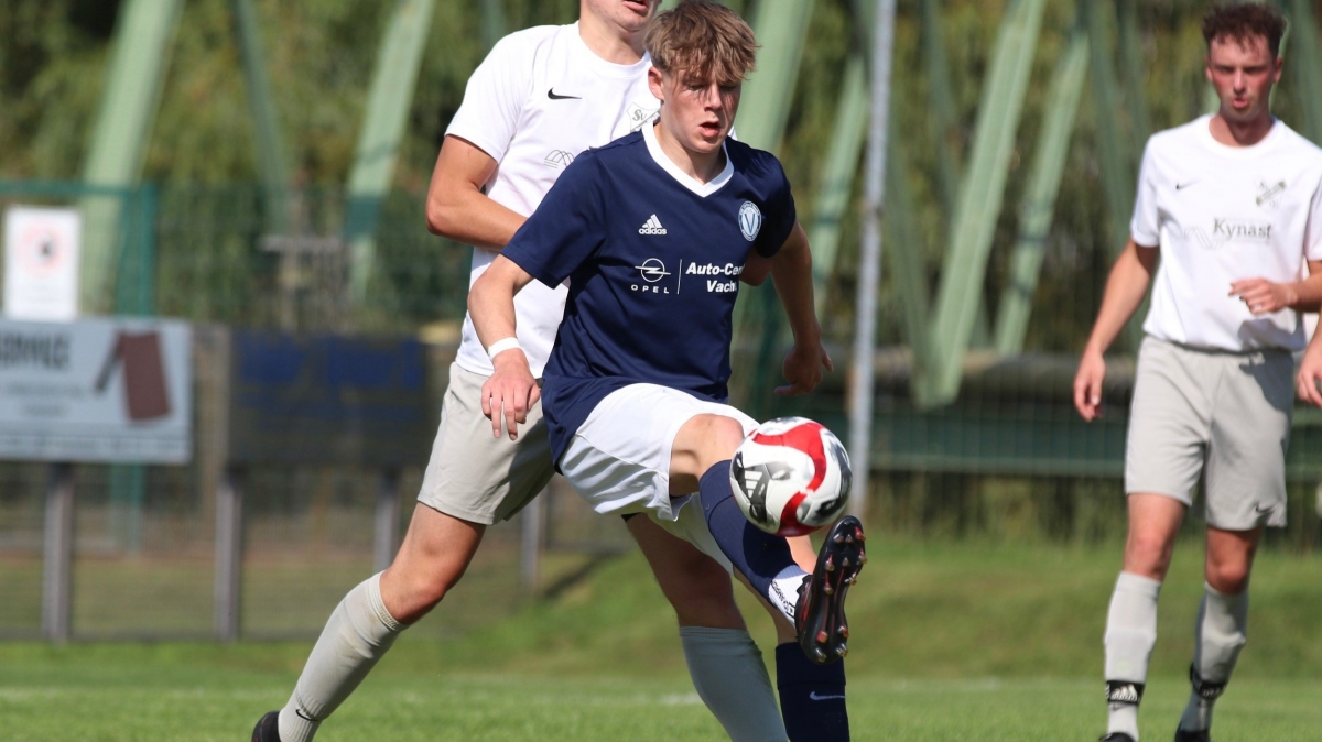 Es war angerichtet, Sonntagnachmittag 15 Uhr, herrliches Fußballwetter – Derbyzeit – die Kreisoberligasaison 25 /26 stand also endlich in den Startlöchern. Bevor die Kugel im Unterbreizbacher-Sportpark aber rollte, ehrte Staffelleiter Paul Gimpel unsere Mannschaft für den Platz am Silbertreppchen aus der Vorsaison, im Anschluss gab Schiedsrichter Kay Siefert die Begegnung frei. Hinein in die ersten Minuten der Partie, welche geprägt waren von vielen Zweikämpfen und Ungenauigkeiten, als auch einem frühzeitigen Wechsel der Gäste. Die Kirchner-Elf, welche unverändert zur Vorwoche auflief, kam oftmals über die linke Seite, die Hereingaben wurden auch gefährlich, aber noch nicht zielführend verwertet. Unsere Gäste setzten auf lange Bälle, aber auch hier hielt sich die Gefahr in Grenzen. Das dickste Ding zur Führung hatte Lennart Jacob auf dem Schlappen, welcher freistehend (26.) die Kugel nicht an Dermbachs-Keeper Blochberger vorbeibekam. Unsere Mannschaft war zu diesem Zeitpunkt besser in der Partie und schickte sich nun an, den ersten Treffer der neuen Saison einzutüten. Nach einer Ecke war es dann soweit; die Dermbacher-Abwehr klärten die Kugel nur unzureichend und so fiel diese Fabian Blum vor die Füße, welcher das Spielgerät per Direktabnahme versenkte – 1:0 (29.). Wer jetzt allerdings dachte, es geht in richtige Richtung, der hatte falschgedacht. Die Gäste spielten den nun folgenden Anstoß direkt in unsere Hälfte, wo man augenscheinlich noch nicht wieder sortiert war. Gemäß dem Motto „Nimm Du ihn – ich hab ihn sicher“, trudelte der Ball Richtung 16-Meterraum, VfB-Keeper Leder erreichte die Kugel noch vor Dermbachs Julian Oehler, der Klärungsversuch landete aber vor den Füßen von Antonio Pedrazzi – dieser hatte folglich leichtes Spiel und so stand es 60 Sekunden nach der Führung wieder Unentschieden (30.). Bis zur Halbzeit sollte nichts weiter passieren und so ging es mit 1:1 in die Pause. Aus dieser kamen die Hausherren aber hellwach zurück auf den Rasen und markierten direkt die erneute Führung. Eine butterweiche Flanke von Lennart Jacob erreichte den am langen Pfosten völlig freistehenden Marius Ißbrücker, der diese – per Kopf (ja richtig gelesen) - mustergültig in die rechte, obere Ecke verwandelte – 2:1 (46.). Der VfB blieb nun drin und macht weiter Druck, der eingewechselte Kevin Nube, provozierte durch sein Anlaufen den nächsten Dermbacher-Ballverlust. Fabian Blum schickte den eroberten Ball Richtung zweiten Pfosten auf Lennert Jacob, welcher den Ball traumhaft, ebenfalls per Direktabnahme, unhaltbar zum 3:1 in den Kasten jagte (54.). Die Kirchner-Truppe verdiente sich nun mehr und mehr das Ergebnis, verpasst es gar jenes weiter auszubauen. Mitte des zweiten Durchgangs verflachte das Spiel etwas, Vacha hatte die Kontrolle, aber der Deckel war eben noch nicht drauf. Der Gast rappelte sich zum Ende der Partie nochmals auf und hätten mit einer abgerutschten Flanke kurz vor Ende fast noch das 2:3 erzielt (87.). Ein Anschluss hätte sicherlich noch mal Spannung gebracht, auch Lucas Leder konnte sich Richtung Schlusspfiff in der ein oder anderen Aktion auszeichnen.